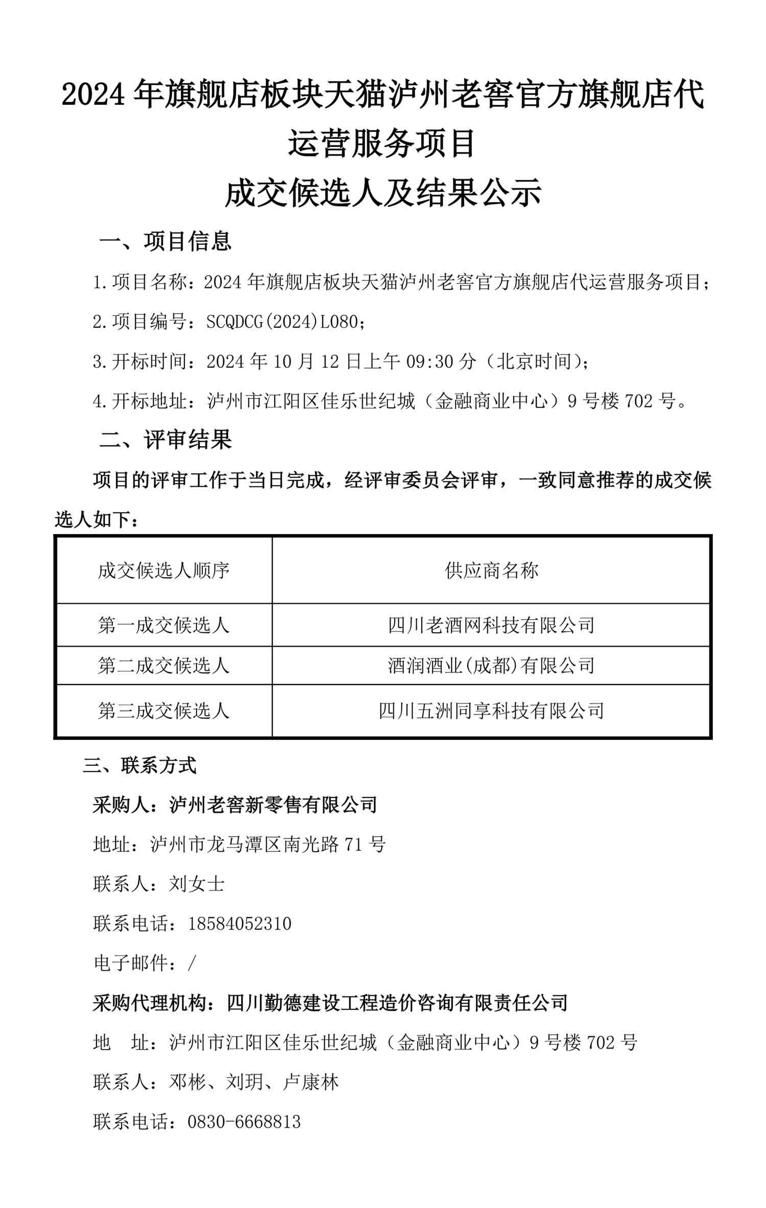 2024年天猫公海gh555000aa线路检测官方旗舰店代运营服务项目成交候选人及结果公示
