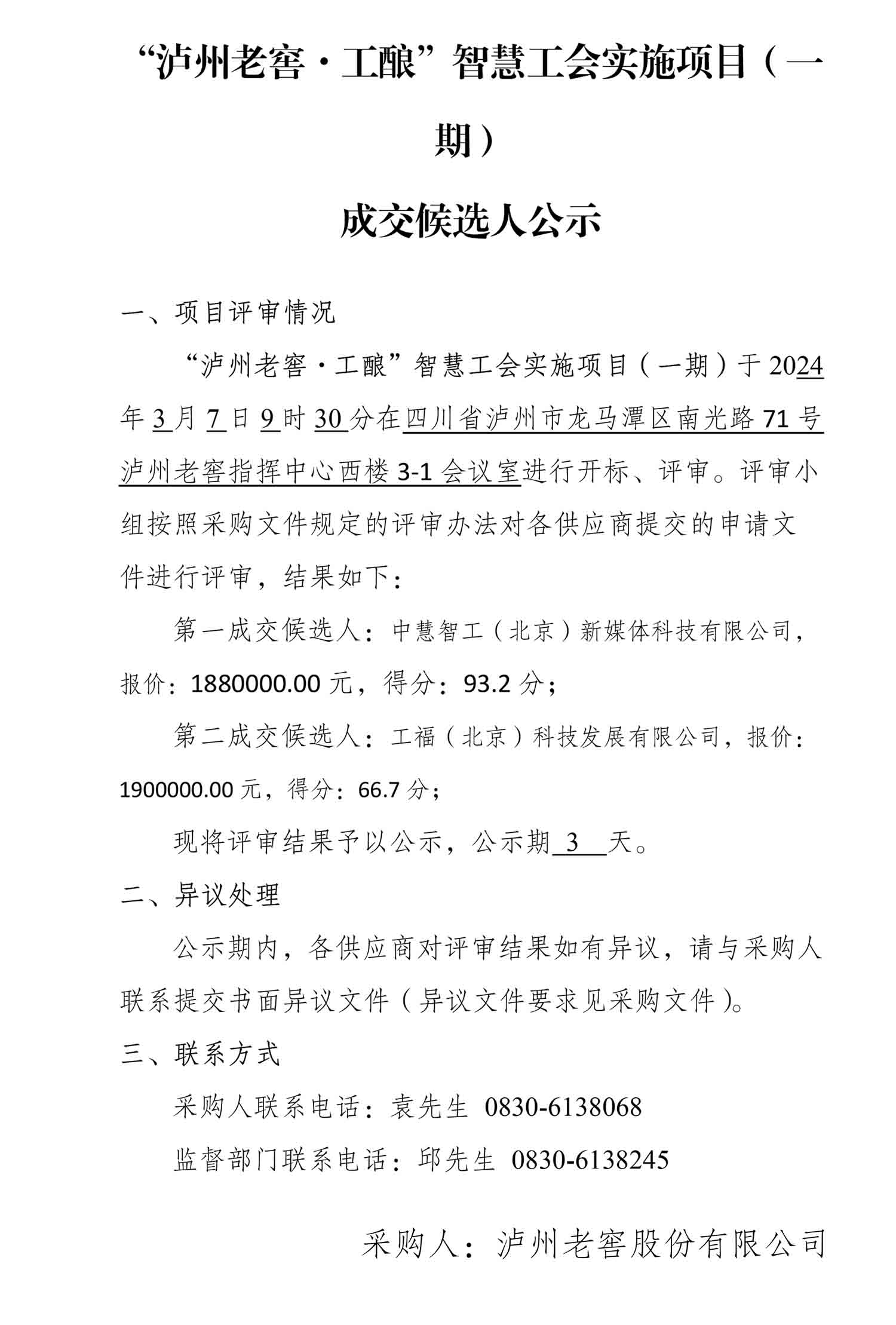 “公海gh555000aa线路检测·工酿”智慧工会实施项目(一期)成交候选人公示