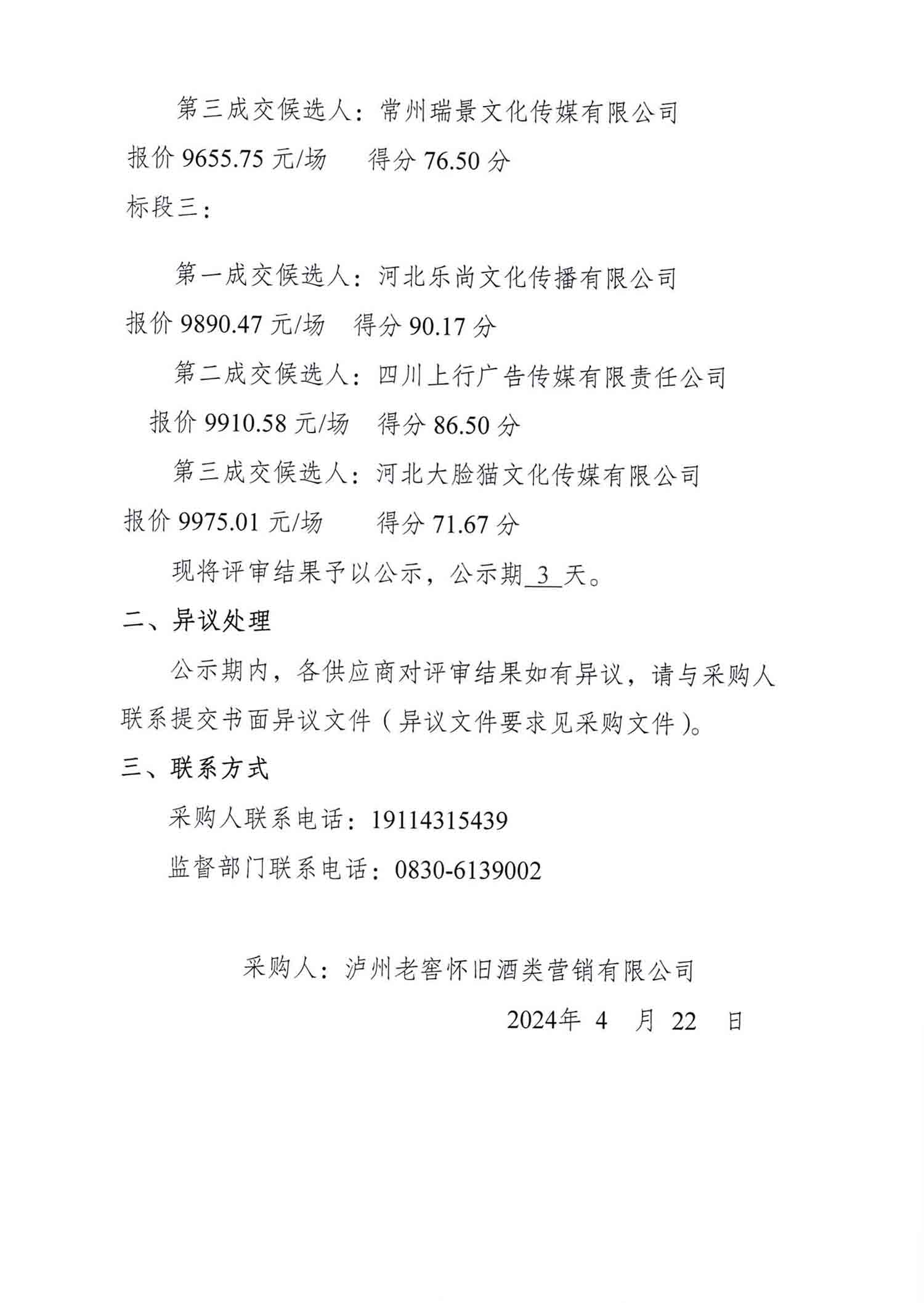 2024年公海gh555000aa线路检测特曲60版时光露营节年度招标项目成交候选人公示