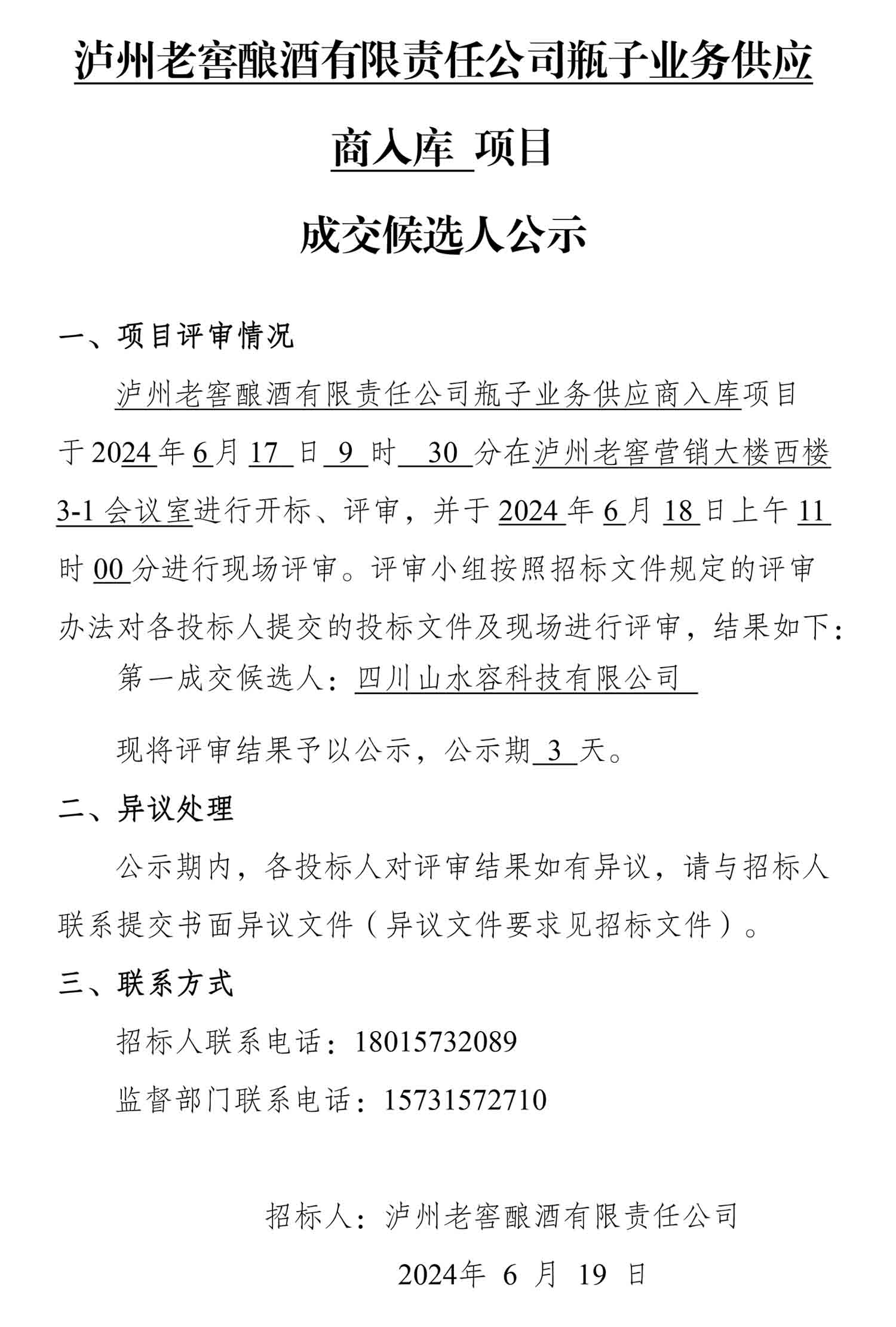 公海gh555000aa线路检测酿酒有限责任公司瓶子业务供应商入库项目成交候选人公示